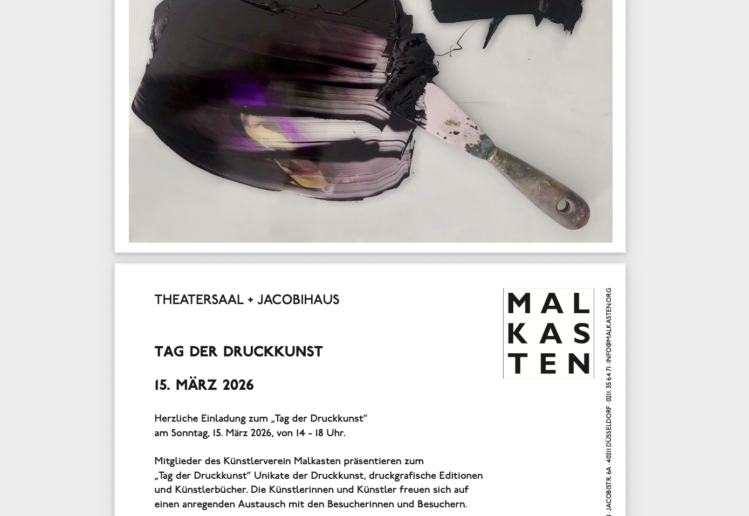 Herzliche Einladung zum „Tag der Druckkunst“ im Künstlerverein Malkasten in Düsseldorf am 15. März 2026 von 14.00 – 18.00 Uhr.